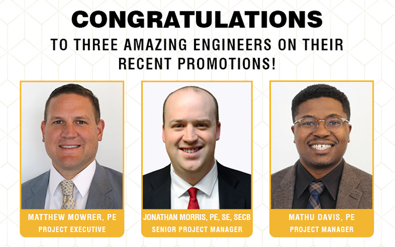 Structural engineering and design company O’Donnell & Naccarato announces staff promotions for three of our engineers. We are proud to have all of these people on our team and congratulate them on their hard work and success.