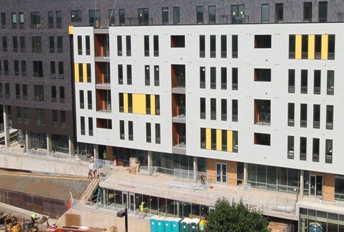 O’Donnell & Naccarato provided structural design of the 212,000 SF, 700-bed student housing complex comprised of 5 residential floors situated above 2 podium levels housing above/below grade parking and ground-level retail.