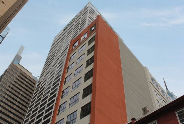 O’Donnell & Naccarato provided structural design of the 11-story, 100,000 SF micro hotel. Space-efficient suites in the slender 252-room tower offer unique queen and bunk bed rooms averaging 170 SF. The structural system is supported on a deep foundation of drilled concrete shafts resting on bedrock.