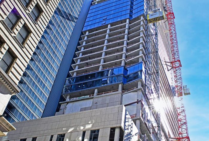 O’Donnell & Naccarato provided structural design of the 51-story dual hotel tower, Philadelphia’s tallest concrete structure. The 784,470 SF tower is constructed atop a 4-level, below-grade integrated parking garage and houses 753 rooms in total with W Hotel operating the upper most floors and Element Hotel residing below. Multiple school bus-sized, reinforced concrete transfer beams weighing up to 567,000 pounds were installed to create the largest column-free ballroom in the city. The 6 to 9-foot-deep concrete foundation was poured over a 24-hour period and required over 600 cement trucks and crews working around the clock.