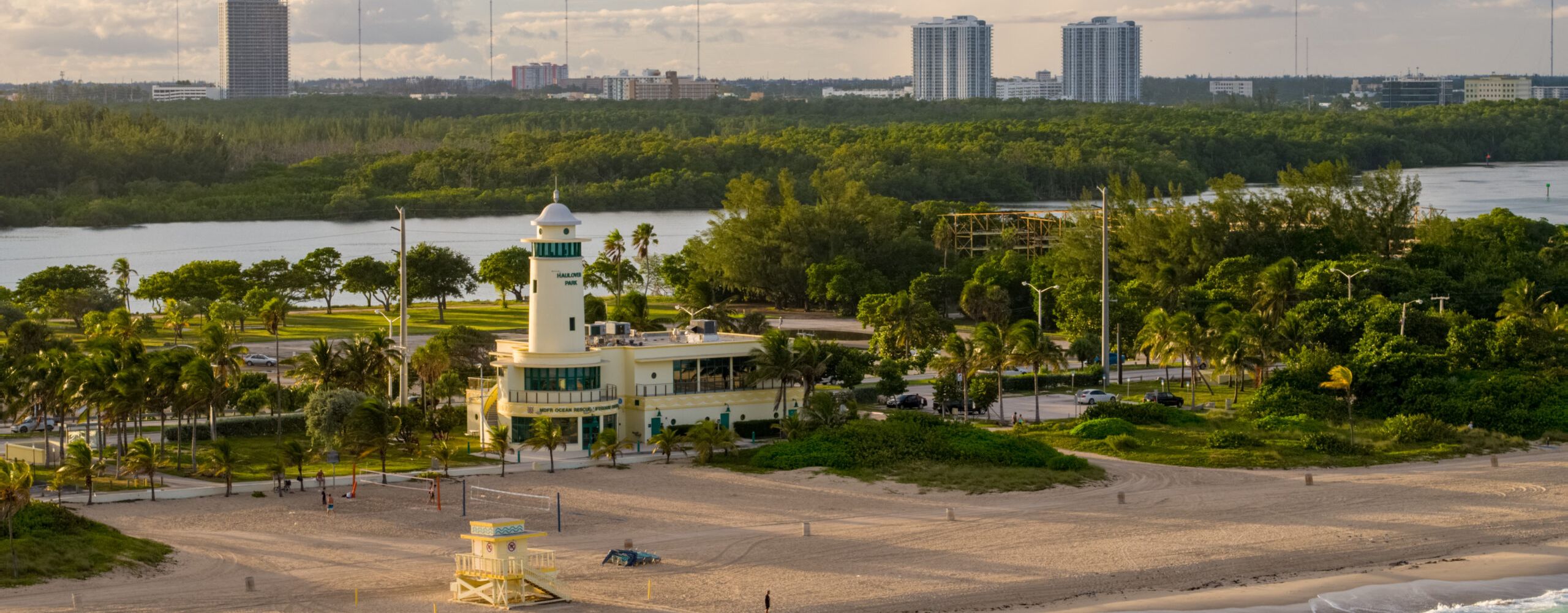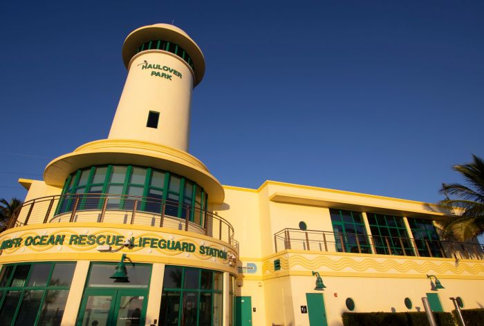 Miami-Dade Fire Rescue Ocean Rescue Marine & Safety Facility: This state-of-the-art facility features a nearly 80-foot-tall observation tower for enhanced beach surveillance. The building includes a training room, lounge, offices, locker rooms, a gym, a conference room, general and vehicle storage, making it a critical hub for marine safety operations.