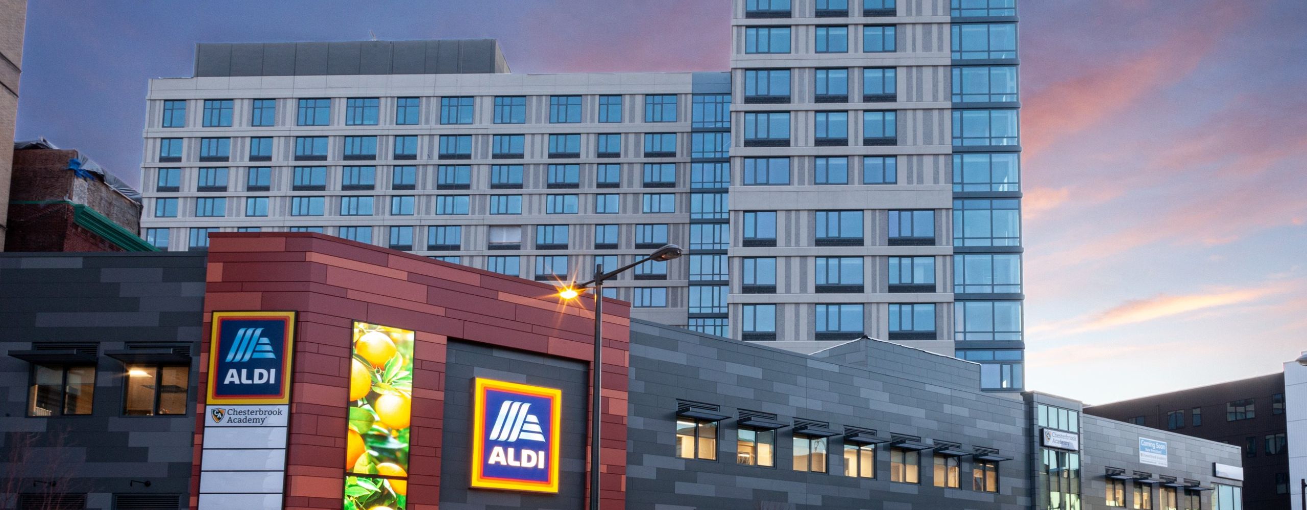 O’Donnell & Naccarato provided structural engineering services for the 14-story, mixed-use, high-rise development and 4-level, 292-space parking garage. The 612,000 SF precast concrete plank and Girderslab steel tower houses 460 apartments with rooftop amenities including a fitness center, roof garden, and roof deck pool. The podium’s expansive L-shaped footprint kept the building low-rise while providing the needed retail and garage space. The balance of the building is allocated to 60,000 square feet of retail space, with the Aldi supermarket taking up 40 percent of that total.