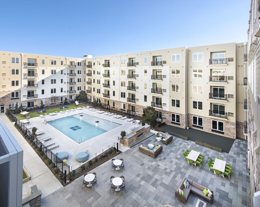 5-story, 294,430 SF residential building with 261 one-and-two-bedroom apartments. The complex features a...